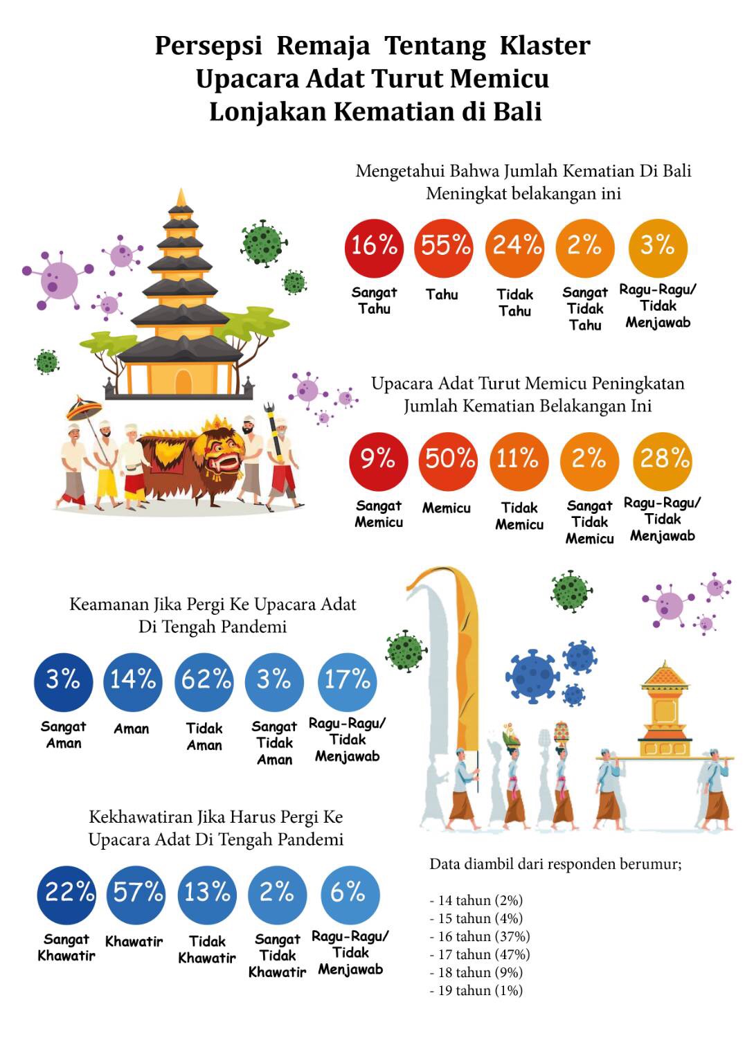 Perkembangan COVID-19 Bali tak kunjung membaik. Beberapa hari belakangan ini, korban jiwa akibat COVID-19 terus berjatuhan. Ditambah lagi muncul kluster upacara adat yang kian memperkeruh keadaan. Lantas, bagaimana pandangan remaja Denpasar?